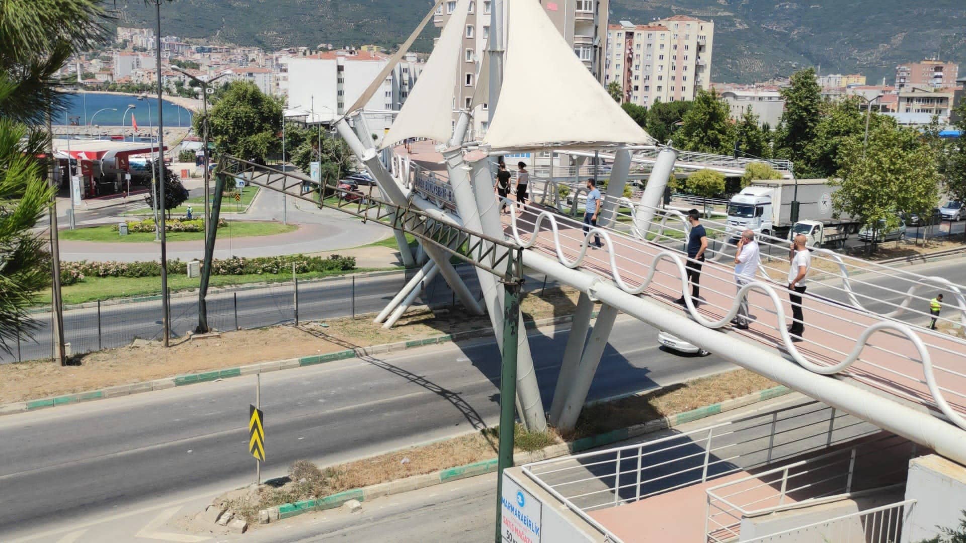 Kaza, Gemlik ilçesi Bursa-Yalova yolu üzerinde yaşandı. Alınan bilgiye göre, 16 MDL 56 plakalı damperli kamyon, jandarma rampasından aşağıya inerken henüz bilinmeyen bir sebepten dolayı damperi açıldı. Dörtyol köprüsüne geldiğinde dorse üst geçide çarptı. Üst geçidin ön bölümünde hasar oluşurken, kamyonun damperi kullanılamaz hale geldi. Kaza esnasında üst geçitte yaya bulunmaması da büyük bir felaketin önüne geçti.
