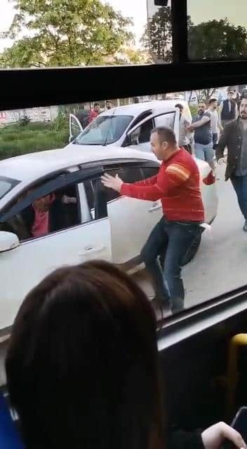 Çevredekilerin araya girmesiyle son bulurken bu anlar kameralara saniye saniye yansıdı.