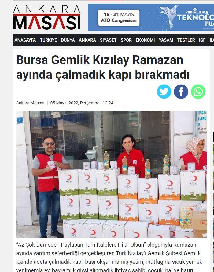 Ramazan ayı içerisinde yardım faaliyetlerine hız vererek devam eden Türk Kızılay’ı Gemlik şubesi gece gündüz demeden yaptığı çalışmalar ve hayırseverlerin bağışlarıyla kaynayan kazanlar Ramazan ayı içinde toplam 7000 kişinin yaşadığı evlerin iftar ve sahur sofralarında sıcak yemek oldu. Ramazan ayının sembolü pidelerden herkes tadabilsin diye Gemlik Kızılay iftarlık yemeklerin yanında pide ikramında da bulundu. Her gün yüzlerce pide kapı kapı dolaşılıp ihtiyaç sahiplerine ulaştırıldı.