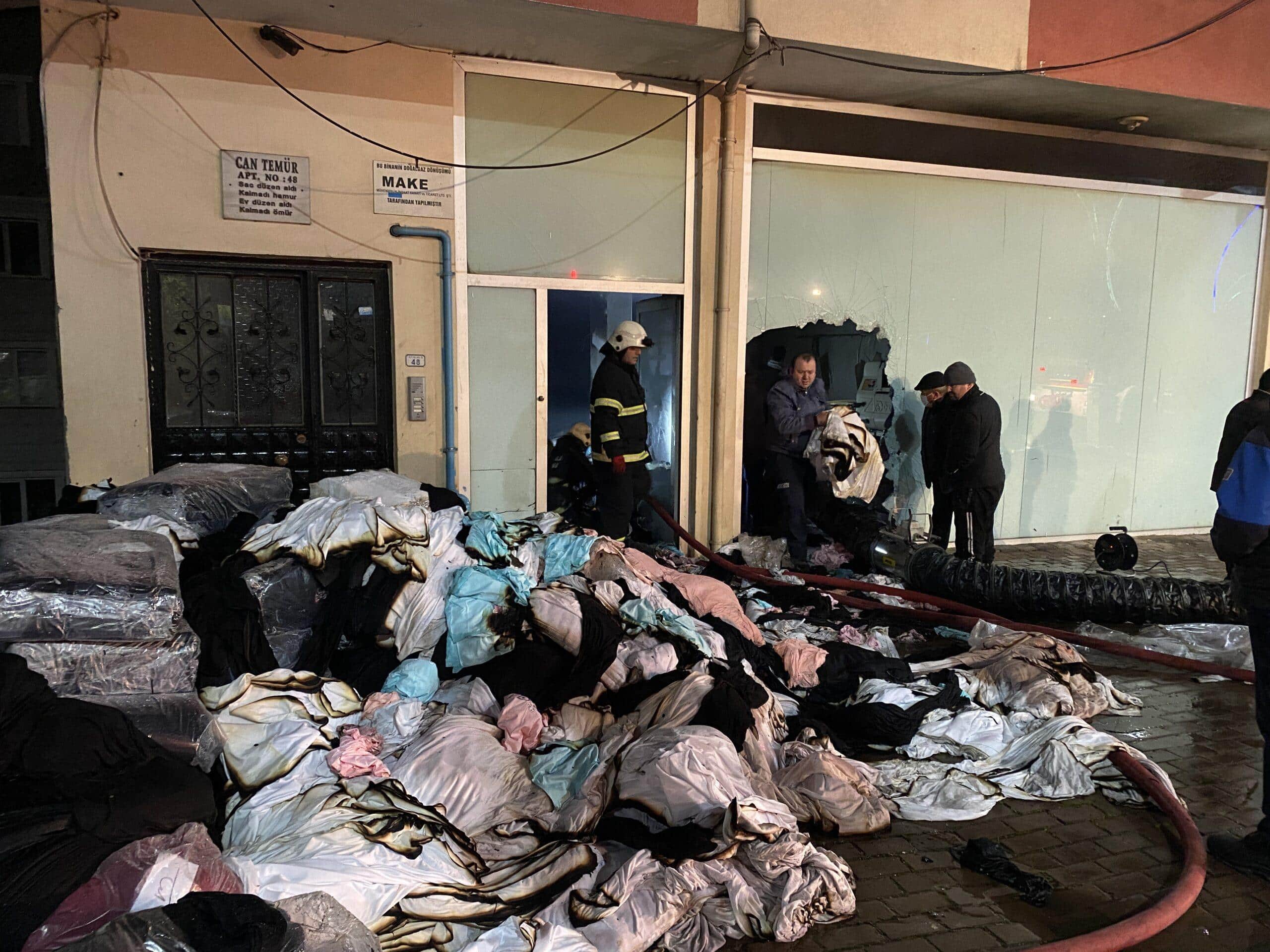 Kumaş deposunda korkutan yangın: Kucaklayabildikleri kumaşları dışarıya böyle çıkardılar